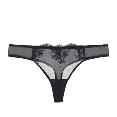 The Kim is an everyday thong in a rose lace and black mesh that's comfortable and sexy.